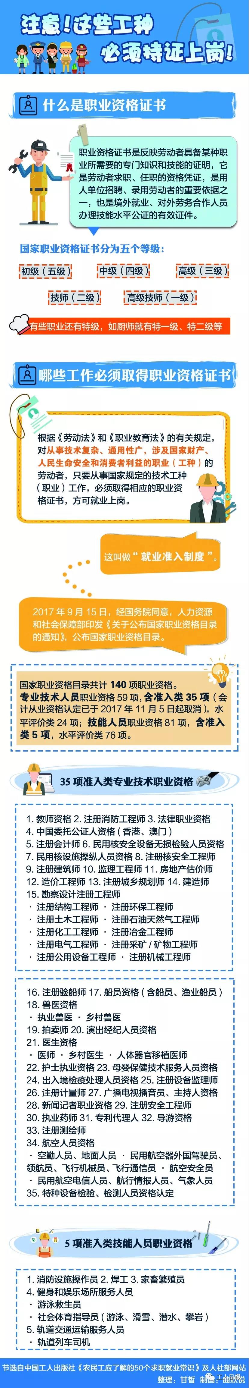 根据国家职业资格目录,准入类专业技术人员职业资格仍有35项,准入类技能人员职业资格仍有5项。这也意味着,仍有40项职业需要“先考证,再上岗”。都是哪些职业呢?