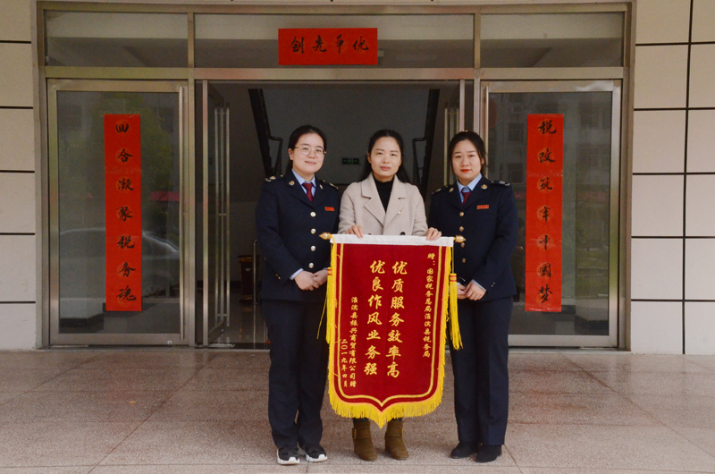 4月12日,淮滨县振兴商贸有限公司的送来“优质服务效率高作风优良业务强”的锦旗,感谢淮滨县税务局为企业提供优质高效的退税服务。