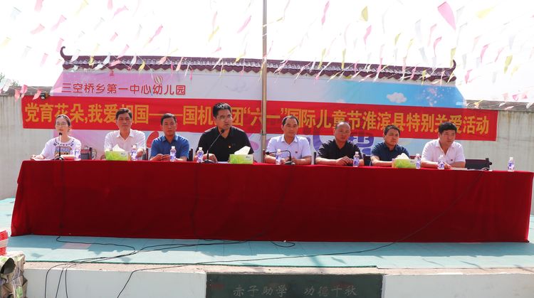 为营造欢快节日氛围,让全体孩子度过一个欢乐、愉快的节日,6月1日上午,国机集团“六一”国际儿童节特别关爱活动走进三空桥乡,淮滨县副县长夏永平、国机集团派驻三空桥乡刘围村第一书记许岩、乡党委书记王亚、乡长徐加强、乡党委副书记徐明银、乡人大主席董万里同志以及三空桥中心学校部分师生代表参加了此次活动。