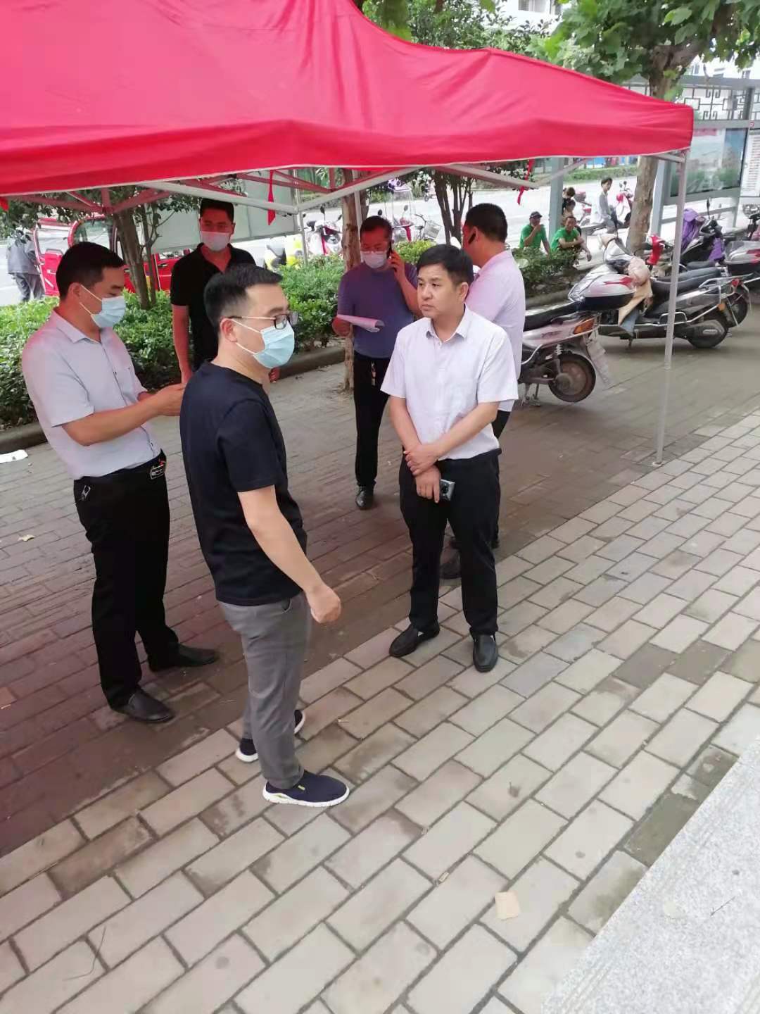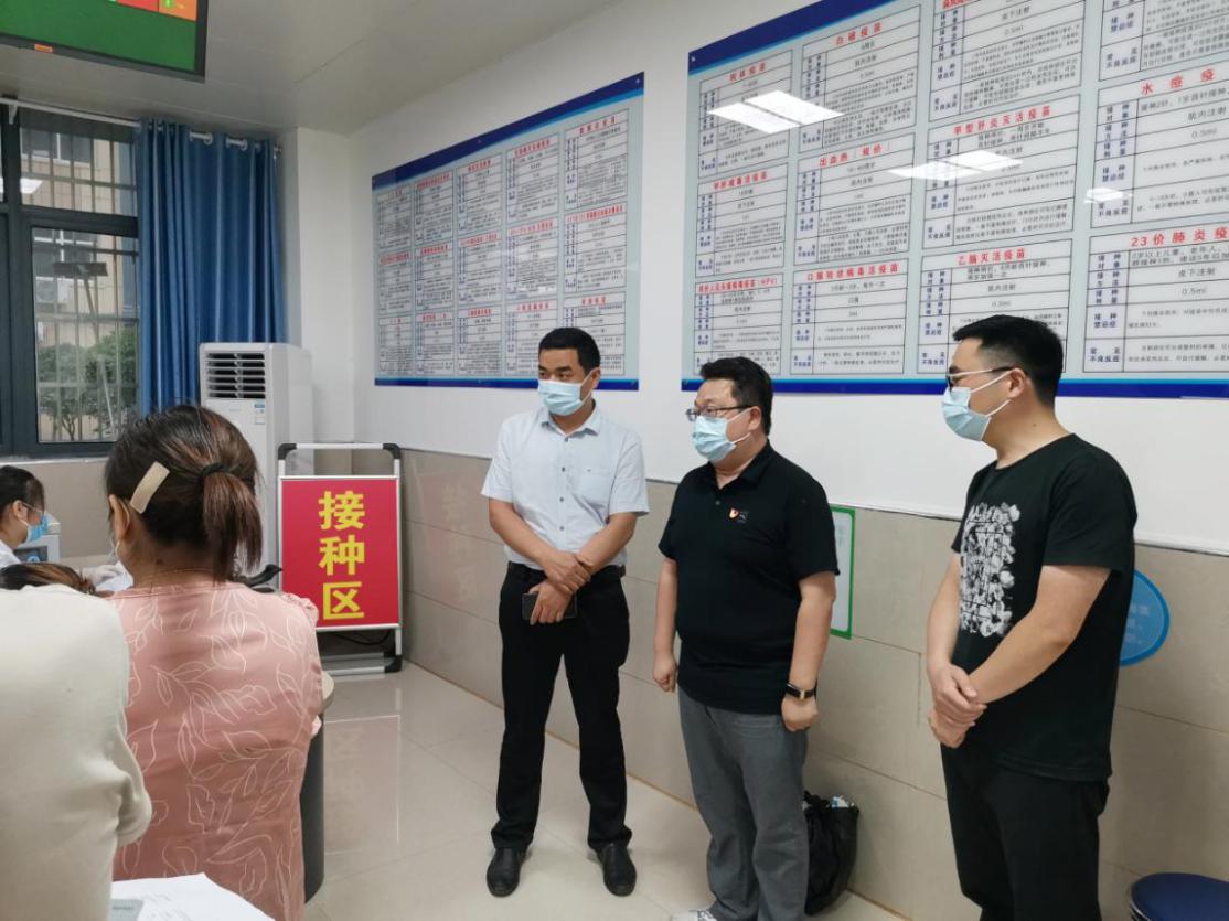 街道党工委书记丁焕红、办事处主任王晓阳到接种点查看接种工作情况。