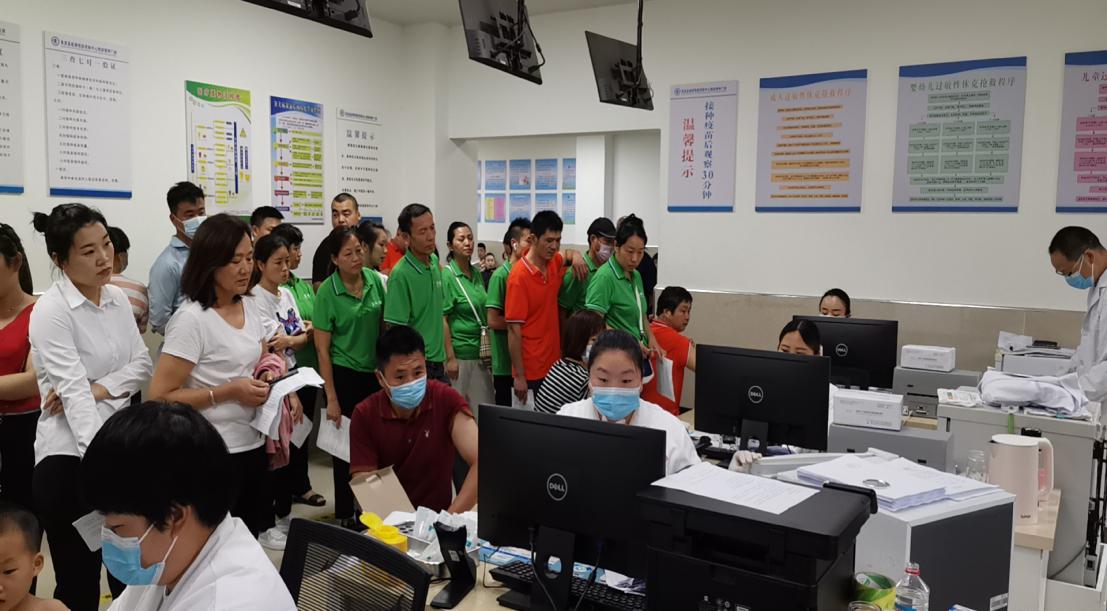工作人员现场登记,包车接送企业员工前来接种