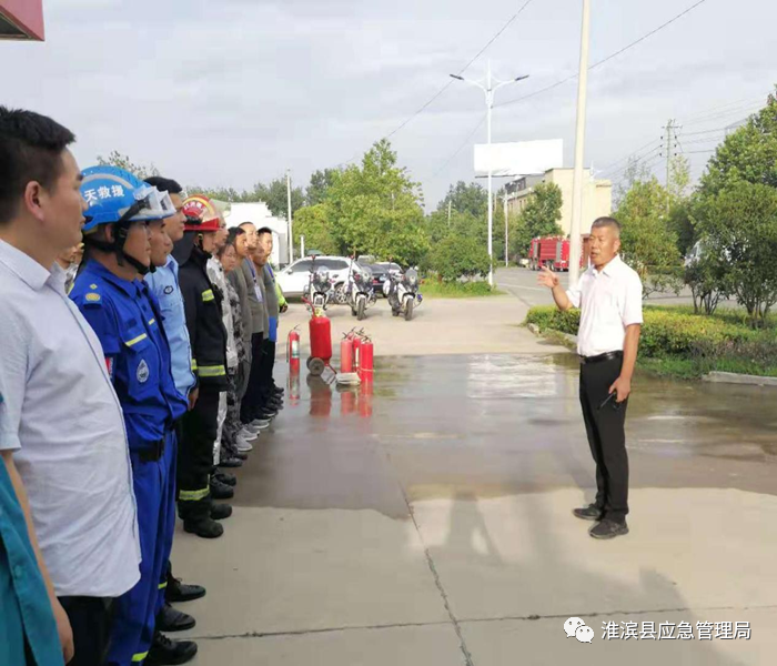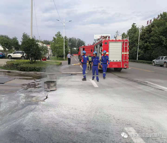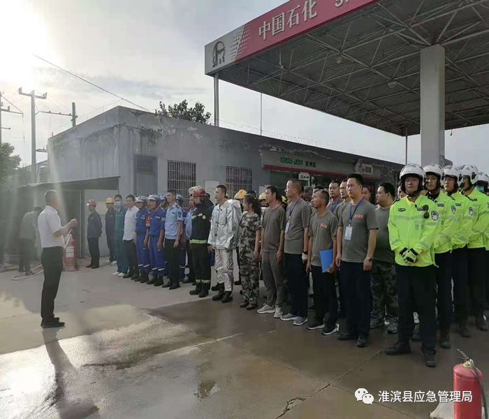 演练由淮滨县应急管理局党委书记贾德军组织,联合县应急管理局、县消防救援大队、县交警大队、县卫健委、县商务局、县气象局、县环保局、电力公司、中国石化加油站、蓝天救援队等单位,共出动各类车辆20余辆、装备器材110余件套。