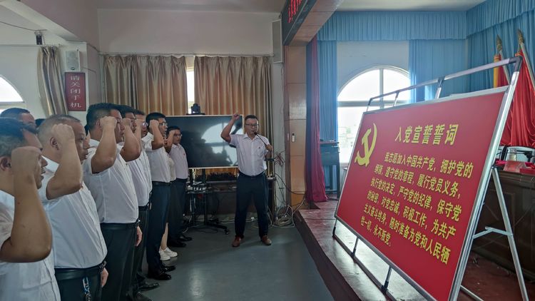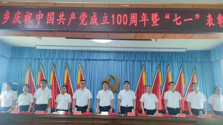 乡党委副书记董波同志带领党员干部重温入党誓词,其中,新党员代表进行庄严的入党宣誓。