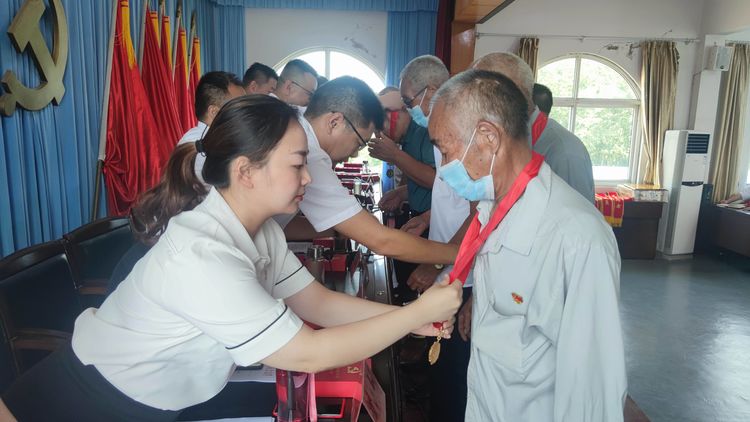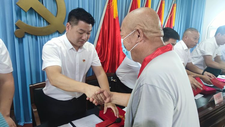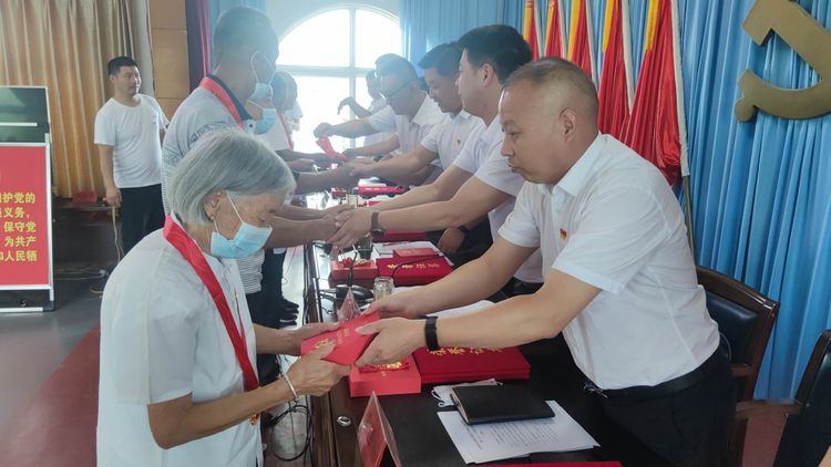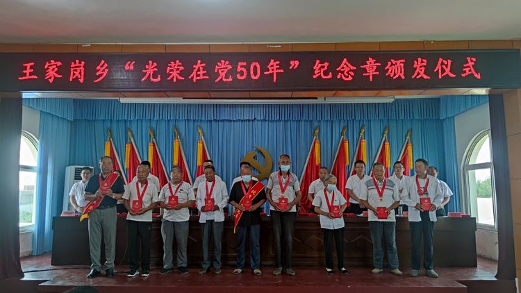 乡班子成员为50年党龄以上老党员代表颁发“光荣在党50年”荣誉纪念章。