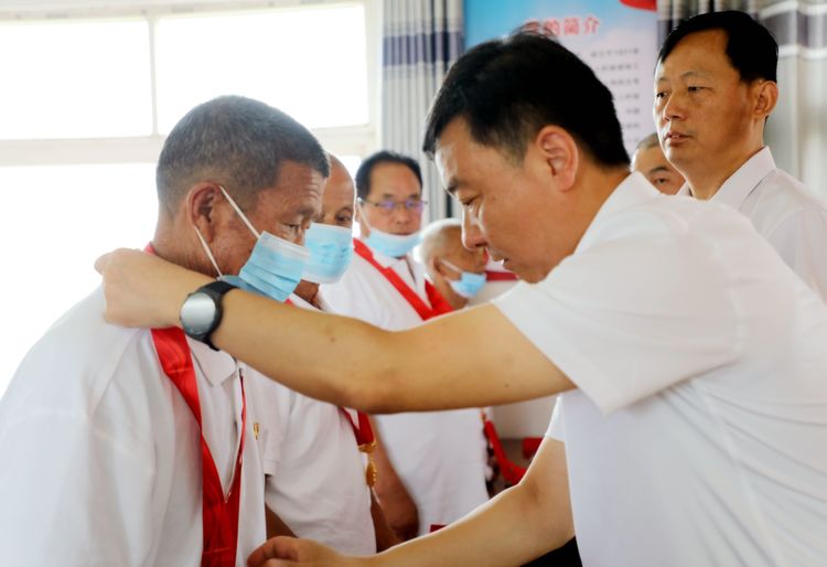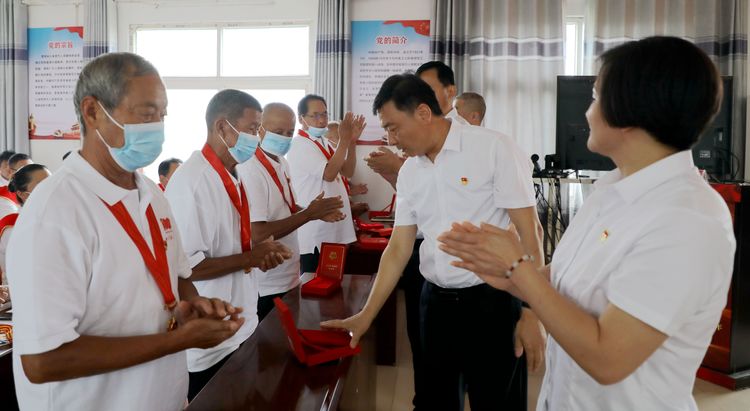 颁发仪式上,芦集乡领导班子向党龄50年以上的党员代表颁发“光荣在党50年”纪念章,并致以并致以崇高的敬意和亲切的问候。