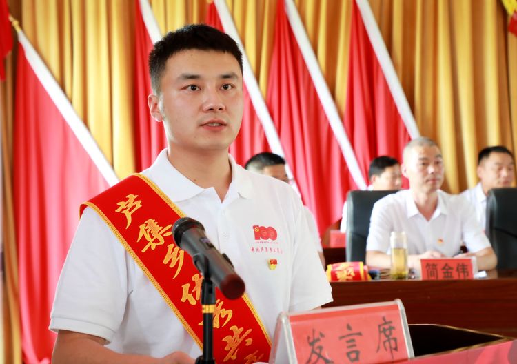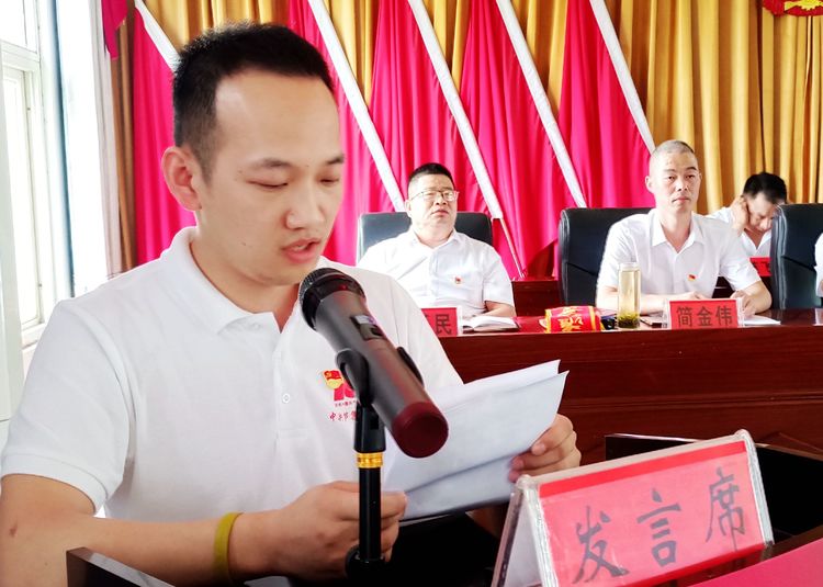 乡党委副书记简金伟同志宣读:《 中共淮滨县委关于表彰全县优秀共产党员、优秀党务工作者和先进基层党组织的决定》(淮文〔2021〕86号)。