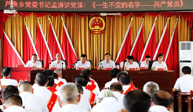 芦集乡全体党员面朝鲜红的党旗,举起右手,庄严宣誓:“我志愿加入中国共产党,拥护党的纲领,遵守党的章程,履行党员义务,执行党的决定,严守党的纪律,保守党的秘密,对党忠诚,积极工作,为共产主义奋斗终身,随时准备为党和人民牺牲一切,永不叛党。”铿锵的誓词,坚定的承诺,让每一位党员的心灵再次受到震撼和洗礼。