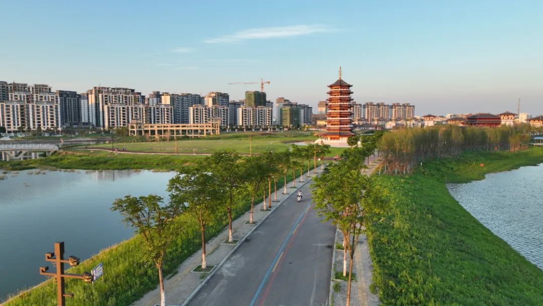 我们淮滨文化园兴建的这座文峰塔原型来自安徽阜阳市文峰公园里的文峰塔(该塔7层八边形钢筋混凝土结构,塔身高29.74米,塔刹高6.6米。),如果有人希望好运当头的话,那就可以爬上塔顶,一览风光,好机会就在眼前。