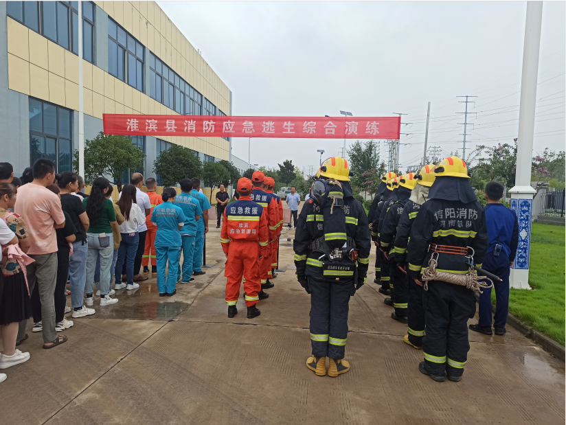 8月28 日上午,河南省淮滨县在苏美达纺织服装科技发展有限公司开展消防应急逃生综合演练,该县应急管理局、县高新技术开发区、县消防救援大队、 县卫健委、融媒体中心、桂花街道办事处、苏美达纺织服装 科技发展有限公司共 100余人参加此次演练。