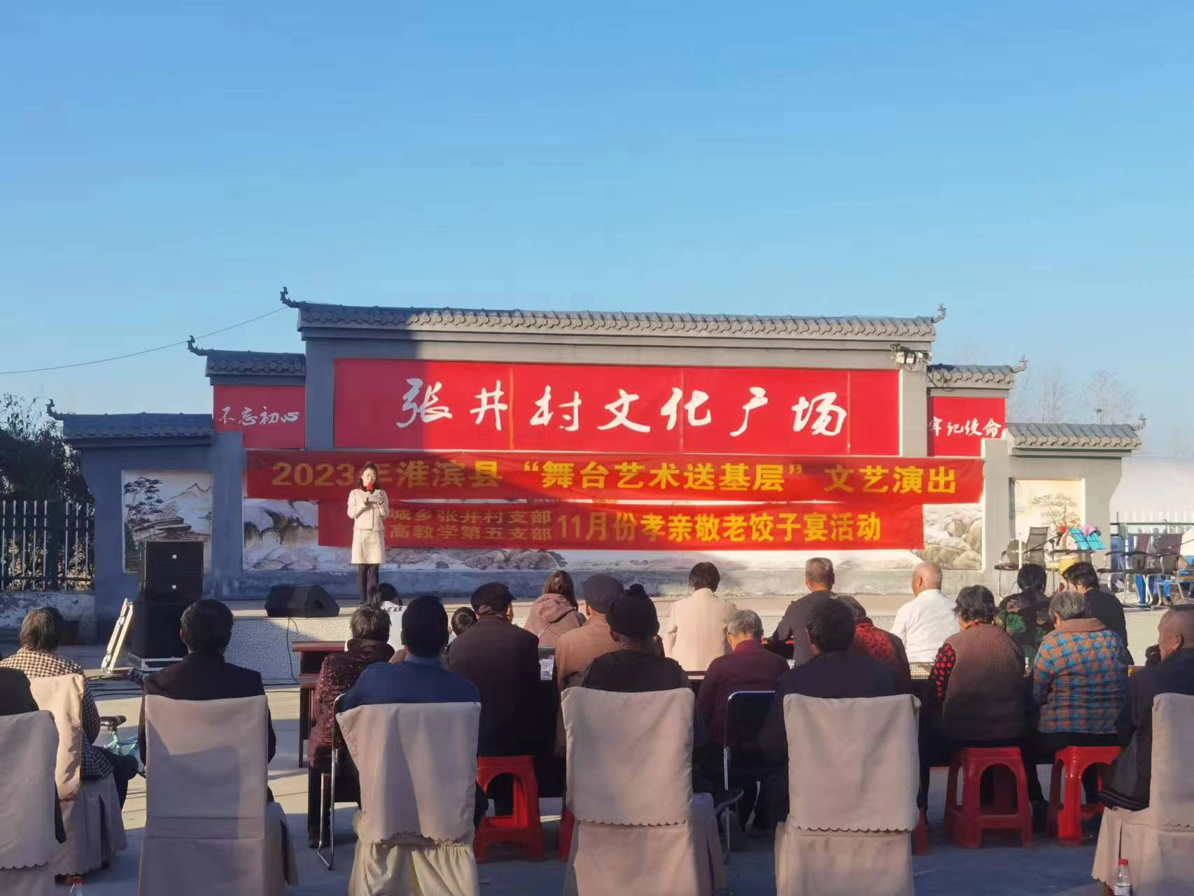 “咚咚锵、咚咚锵、咚锵咚锵咚咚锵……”11月21日下午四点,张井村村委大院里传出了阵阵锣鼓声,张井村支部联合淮高教学第五支部一场“孝亲敬老饺子宴”新时代文明实践活动正在这里举行。