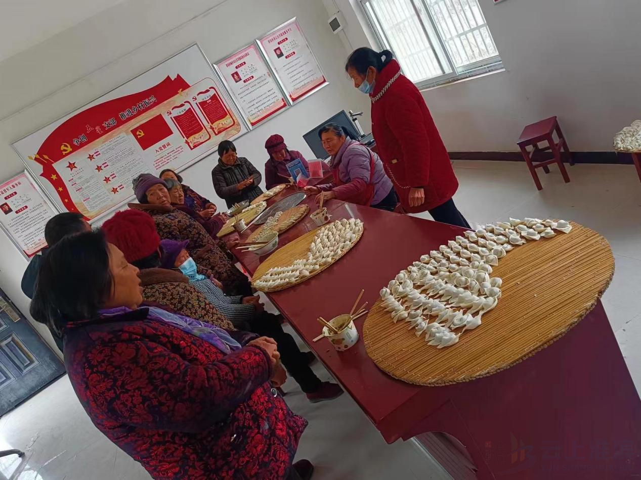 活动开始前,村里的志愿者门早早地来到了现场,进行准备工作,大家一边有序分工,一边互相交流谈心,有说有笑,场面既热闹又和谐。在等待吃饺子的空闲,大家围坐在一起下象棋,切磋棋艺,交流心得、增进彼此间的感情,发扬和传承中国传统文化丰富村民精神文化生活。