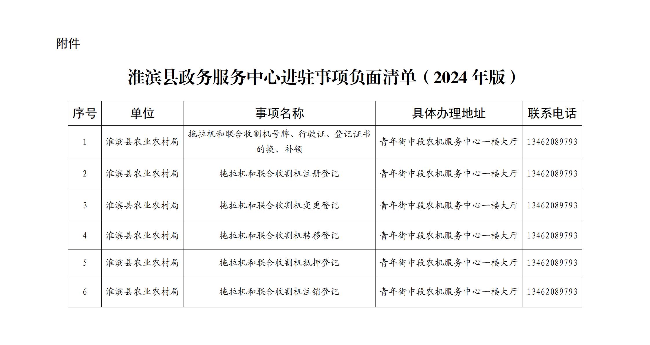 根据《河南省行政审批和政务信息管理局关于进一步加强政务服务中心服务管理工作的通知》(豫审信〔2024〕44号)和信阳市行政审批和政务信息管理局有关通知要求,为深入推进“大厅之外无审批”,结合实际,梳理编制了《淮滨县政务服务中心进驻事项负面清单》(2024年版),现予以公布,接受社会监督。