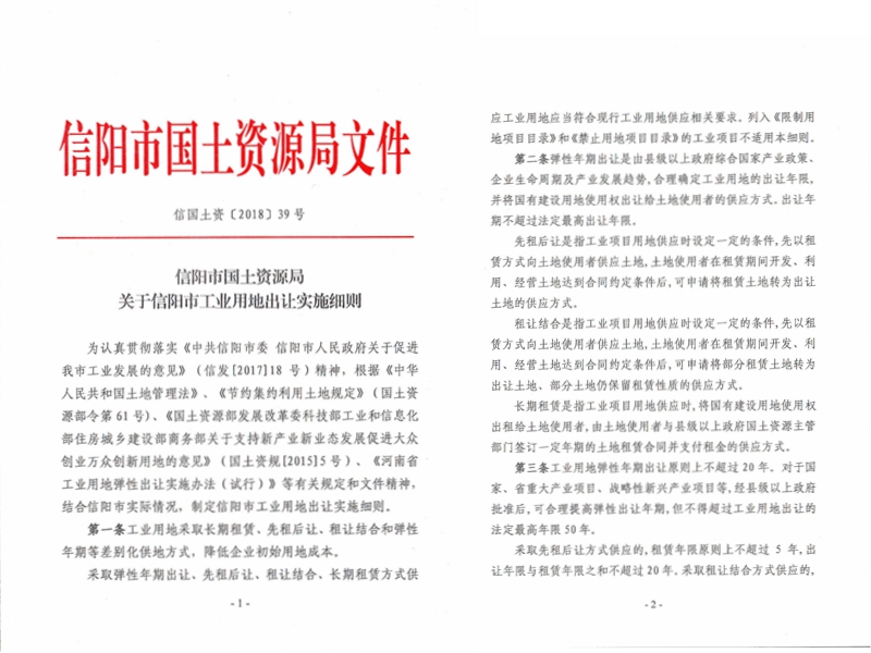 信阳市国土资源局关于信阳市工业用地出让实施细则