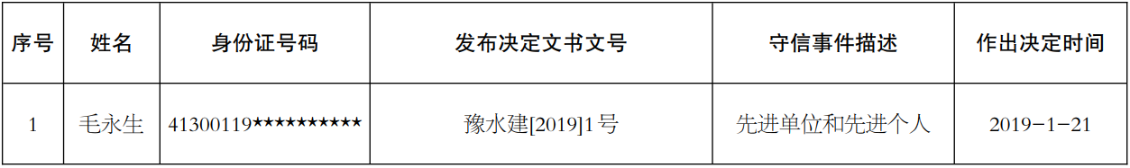 (三)市水利局发布水利建设领域守信自然人“红榜名单”1人