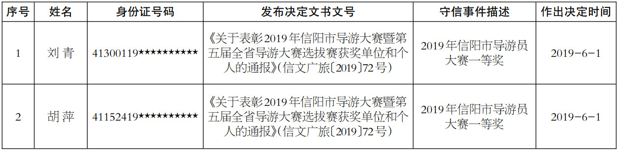 (一)市文化广电和旅游局发布旅游领域守信自然人“红榜名单”2人