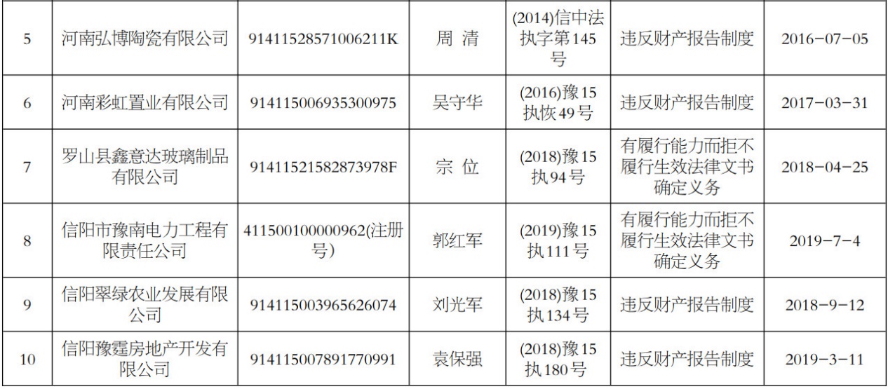 (一)市中级人民法院发布失信被执行人领域失信法人“黑榜名单”10家