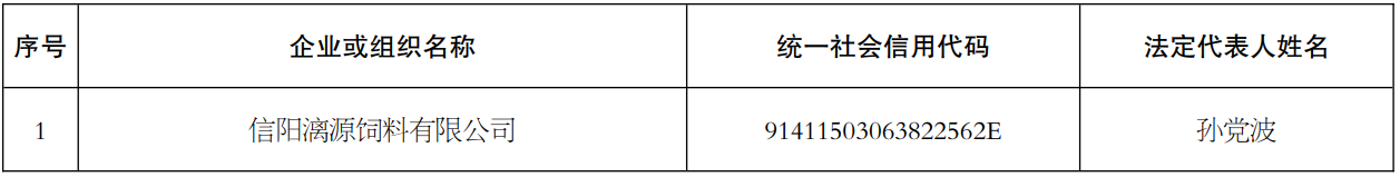 (六)市农业农村局发布饲料生产领域守信法人“红榜名单”1家