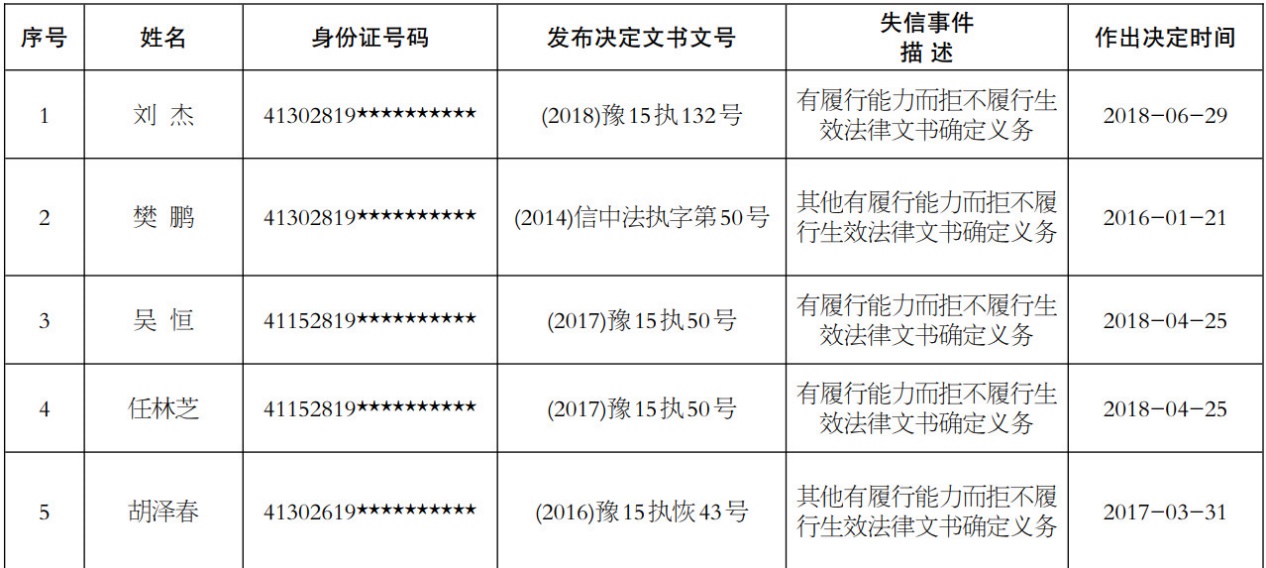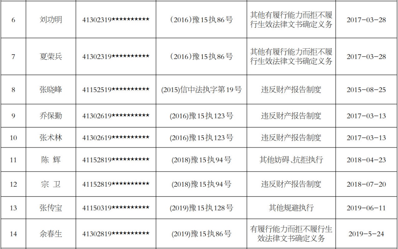 市中级人民法院发布失信被执行人领域失信自然人“黑榜名单”16名