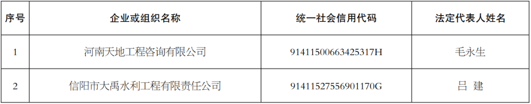 (二)市水利局发布水利建设领域守信法人“红榜名单”2家