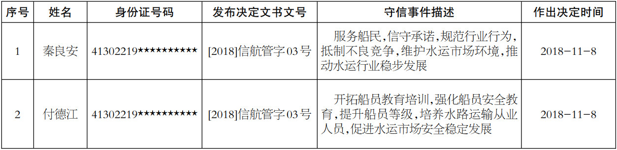 (二)市交通局发布交通运输领域守信自然人“红榜名单”2人