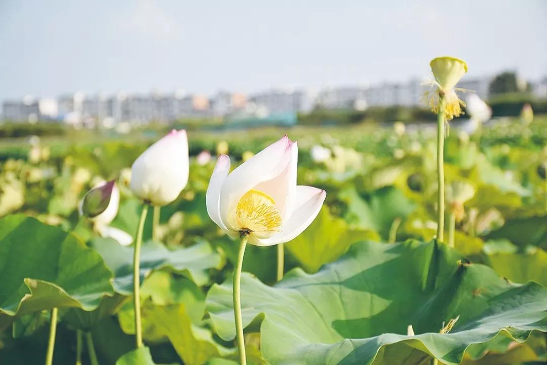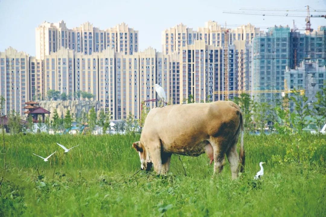 衔接新老城的淮滨东湖、西湖,虽然没有国内人们耳熟能详的杭州西湖、武汉东湖名气大,但其水面宽阔,有亭阁静立,有杨柳拂岸,有白鹭翩飞,风景似乎并不逊色于它们。淮河文化公园,有打造淮滨水景园林城市新名片之愿景,构思宏大,内涵丰富, 2015年开建,今年年底将实现子项目 “走读淮河”开放运营。公园标志性建筑镇淮楼,与江苏淮安镇淮楼同比例修建,楼台高筑,飞檐临空,雄伟壮观。在建设中的淮河文化公园一角,我们还看见在远处楼群的衬托下,有白鹭悠然立于牛背;一群人在天镜湖里采摘野生菱角,欢声笑语不时随风飘来……