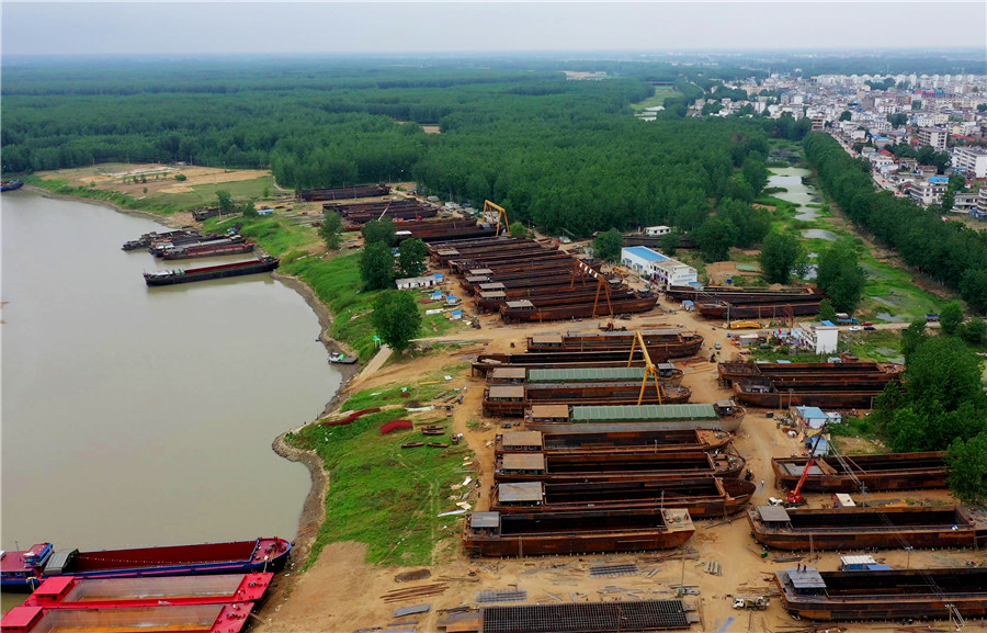 目前,淮滨县造船园区配套齐全、产业链完善,已从河南省最大的造船产业基地成长为淮河流域最大的造船基地,所造船舶畅销于淮河、大运河、长江水系,享有内河航运“十船三淮滨”的美誉。随着淮河生态经济带上升为国家战略,淮滨县造船园区作为信阳淮滨临港经济区的“排头兵”,焕发出勃勃生机。今年,园区所有企业订单充足、船台座无虚席,一片繁忙。截至目前,已完工273艘,正在建设100余艘,预计全年完工360艘,实现产值33亿元。随着造船业的发展,拉动了船锚、船舵、船舱等相关产业的发展,可以说“一业带起百业兴”。