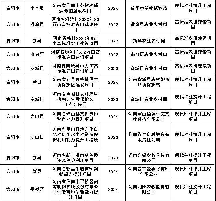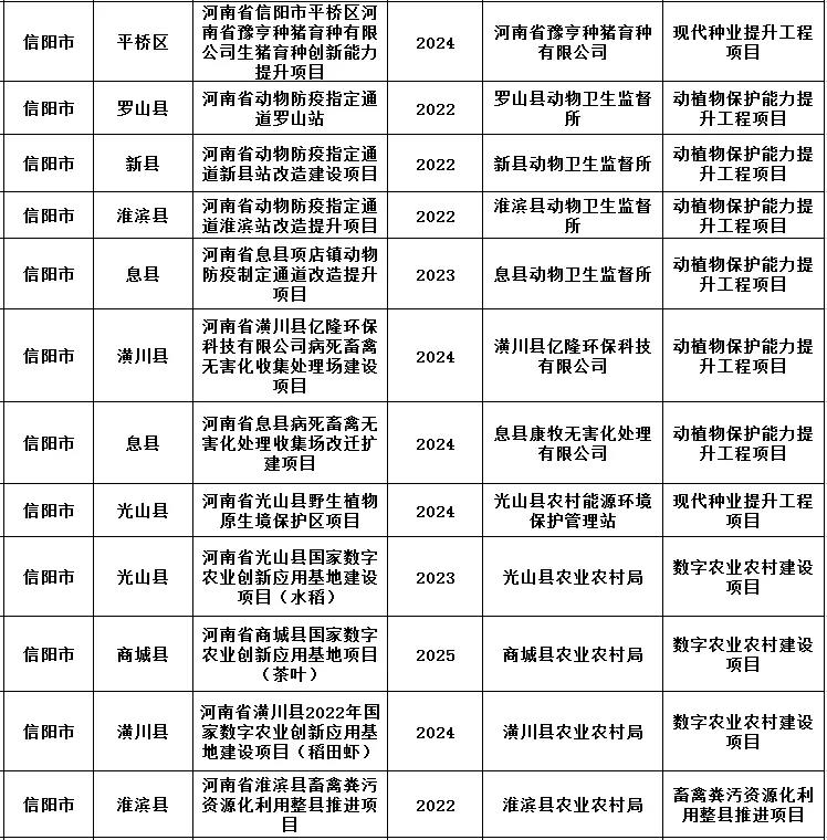 2022-2025年中央预算内投资农业农村建设储备项目(信阳)