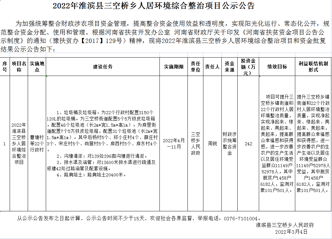 2022年淮滨县三空桥乡人居环境综合整治项目公示公告