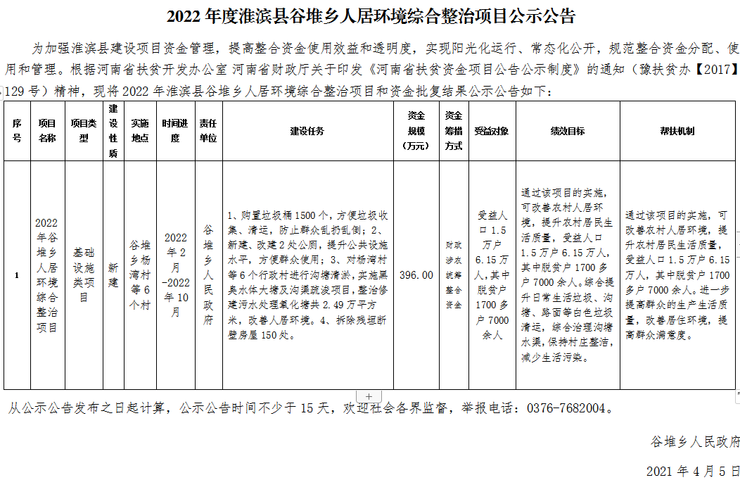 2022年度淮滨县谷堆乡人居环境综合整治项目公示公告