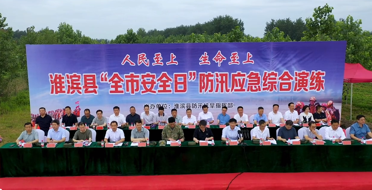 此次演练背景为:受副热带高压影响,淮河上游普降大暴雨,淮河洪峰到达我县,淮河淮滨站水位将达到31.50米,流量达到4500立方米/秒,且水情预报淮河水位将继续上涨,局部堤段出现险情。县防指经会商研判,及时启动防汛Ⅲ级应急响应。