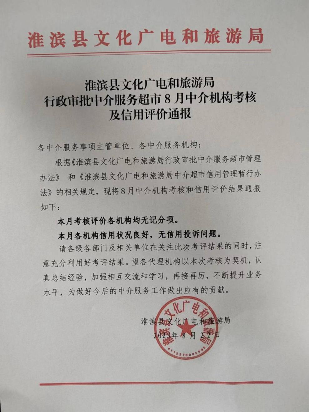 行政审批中介服务超市8月中介机构考核及信用评价通报