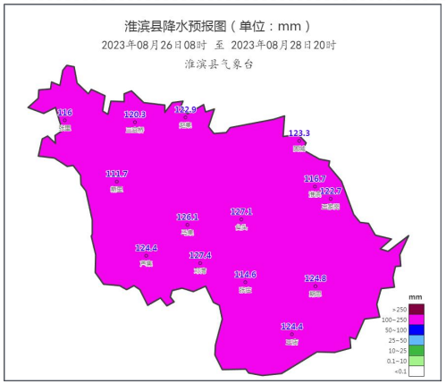 2023年8月26日08时-8月28日20时淮滨县降水预报图