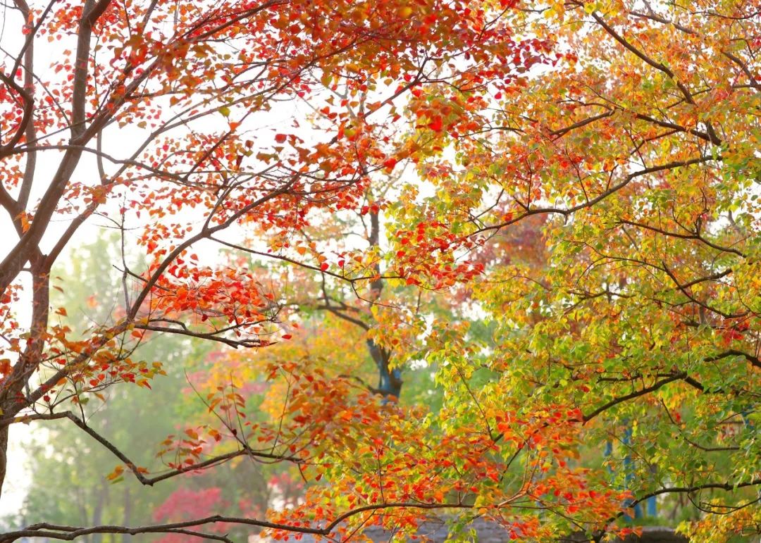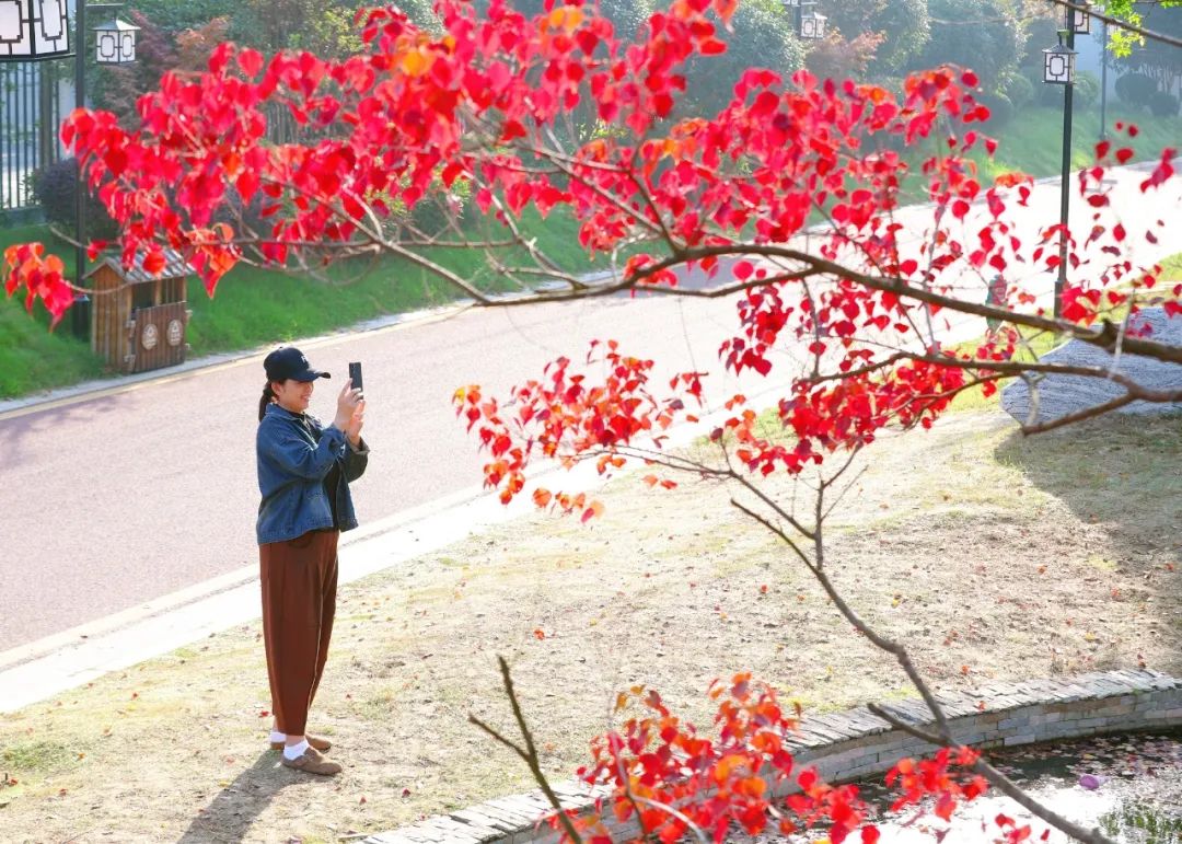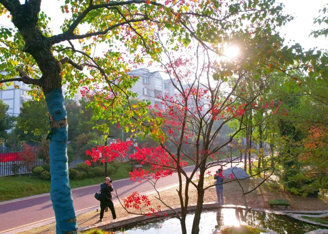每到深秋,园区近百株种类不同的乌桕树,