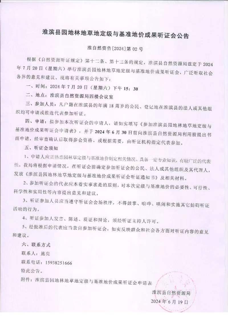 淮滨县园地林地草地定级与基准地价成果听证会公告