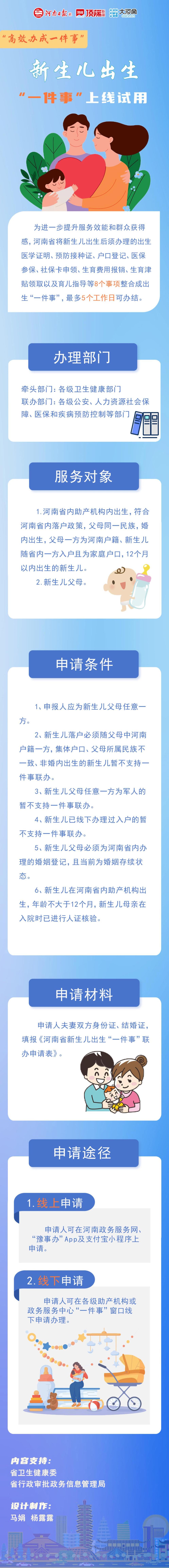 高效办成一件事丨一图读懂河南省新生儿出生“一件事”