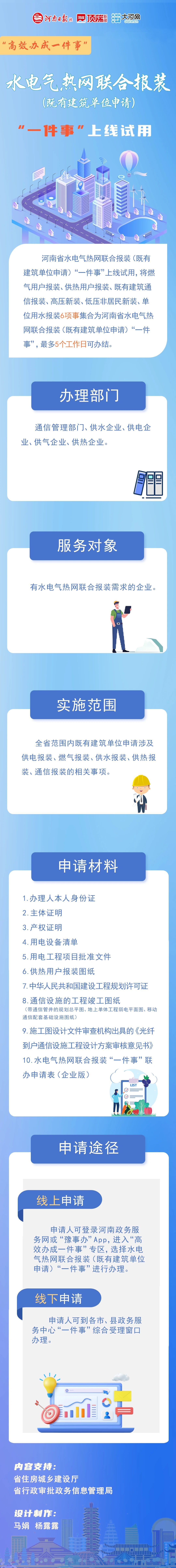 高效办成一件事丨一图读懂河南省水电气热网联合报装(既有建筑单位申请)“一件事”
