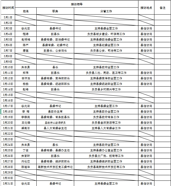 淮滨县3月份县区党政领导干部接访日程预安排表